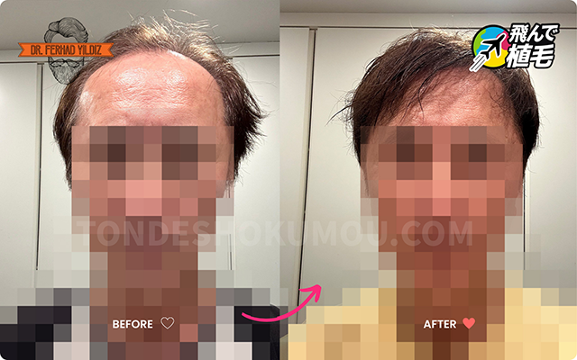 植毛に興味を持ち色々調べた結果、こちらの飛んで植毛に決めました。初の海外旅行で不安がありましたが、案内人のイボさんが相談、ホテル手配、通訳、送迎、アフターフォローなど全て賄ってくれて安心して旅行、手術を行えました。